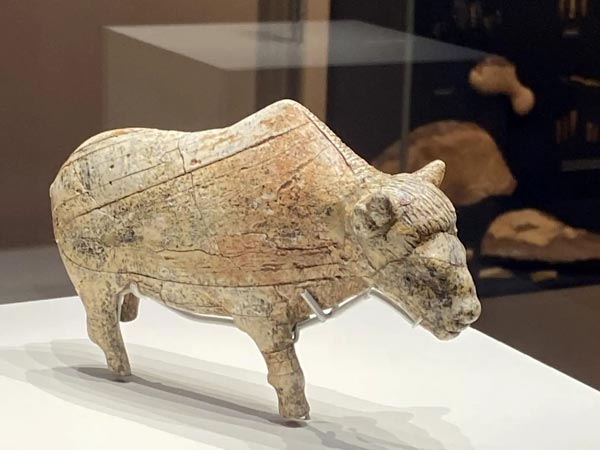 В зале «Костяная индустрия Зарайской стоянки» школьникам показали археологическую коллекцию, главной находкой которой стала статуэтка бизона, вырезанная из бивня мамонта около 20 тысяч лет назад.