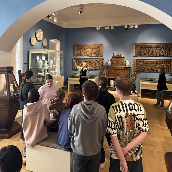 В зале «Зарубежное искусство» ребята увидели коллекции живописи, графики, скульптуры, прикладное и декоративное искусство Западной Европы, Японии и Китая.