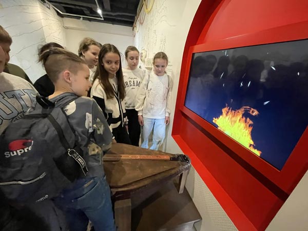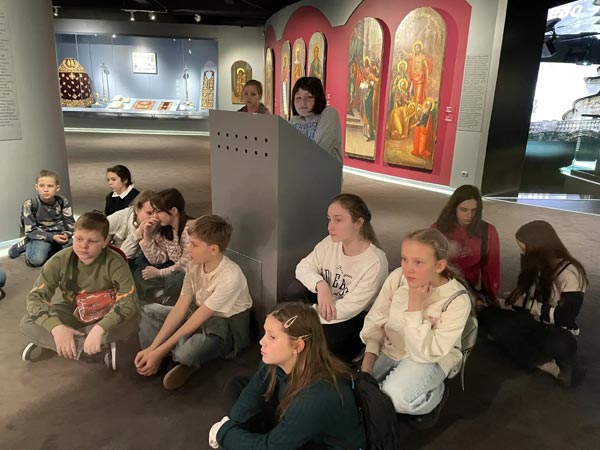 Основная экскурсионная программа началась в стенах Государственного историко-художественного музея «Новый Иерусалим» — одного из крупнейших музейных комплексов Московской области, площадь которого позволяет вместить целые исторические эпохи. Для школьников была проведена обширная обзорная экскурсия по постоянной экспозиции. Экскурсанты посетили зал «Новый Иерусалим. Памятник истории и культуры XVII–XXI веков», где началось знакомство с замыслом Патриарха Никона о создании образа Палестины под Москвой, а также «Особую кладовую» — сокровищницу, где хранятся предметы из драгоценных металлов, веками жертвовавшиеся в монастырь царями и вельможами. Далее ребята увидели выставку «Война. Победа. Память», раскрывающую народный подвиг в плакатах, фарфоре и лаковой миниатюре 1940–1980-х годов. Любопытно, что на некоторых плакатах можно увидеть карикатуры на Гитлера работы знаменитых «Кукрыниксов». Отдельный раздел — «МУЗЕЙ. ОПАЛЕННЫЕ СТРАНИЦЫ» — посвятили истории «Нового Иерусалима» в годы Великой Отечественной войны.