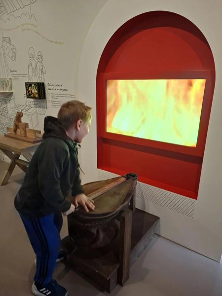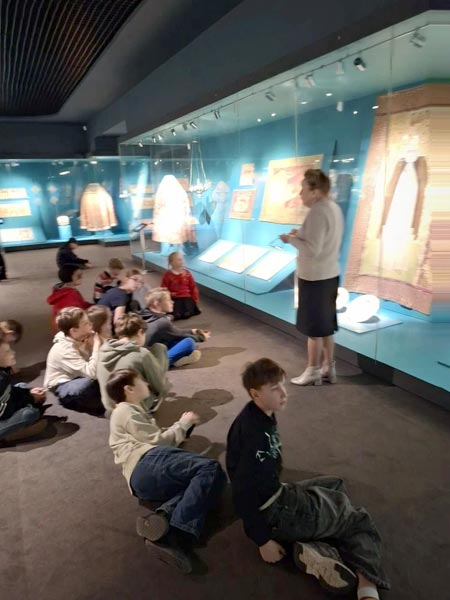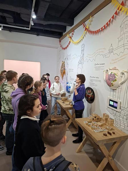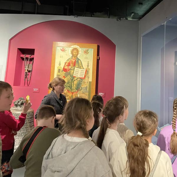 Вниманию юных гостей были представлены уникальные экспонаты: коллекция печной керамики — расписные изразцы XVIII – начала XIX века, которые не только грели, но и «рассказывали» сказки на стенах; древнерусское лицевое шитье — уникальные вышитые иконы и облачения, где цветными нитями словно «писали» живописные полотна; археологические находки; собрание иконописи. Особый восторг вызвали подлинная модель храма Гроба Господня XVII века (по ней монахи обучали паломников), факсимильная подпись Патриарха Никона и редчайшие предметы, поступившие в фонд музея в 1920-х годах из Воскресенского Ново-Иерусалимского и Валдайского Иверского монастырей, а также личные вещи Патриарха Никона.