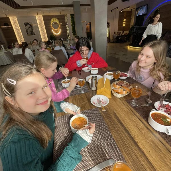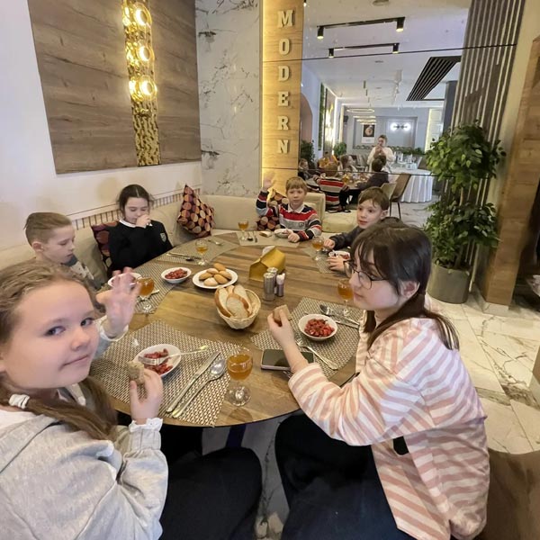 Завершился насыщенный день организованным бесплатным обедом в кафе города Истра, где ребята смогли обсудить увиденное и поделиться яркими эмоциями от поездки, которая наверняка запомнится им надолго.